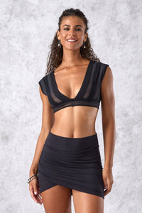 Crafted from sustainable bamboo spandex and accented with transparent mesh panels strategically placed to reveal a hint of skin—sexy, elegant, and thoughtfully designed.