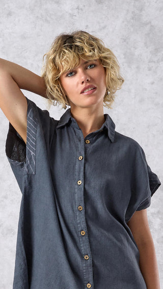 - Featuring hand-printed panels along the shoulders, each piece showcases unique handcrafted artistry.